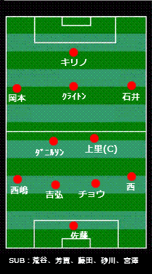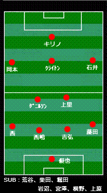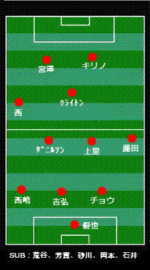 うぉらっしゃああああああああ!祝・今季初勝利。 チームにとってなんと275日ぶりになる白星はロスタイムに転がり込んできた。 いやっほおおい! ―ダイジェスト― 学生の身で1ヶ月に2つの「飛行機や新幹線を使わなければいけないような土地」への遠征は正直キツい。別に貯金がまるでないわけでもないが、そうそう親にも頼っていられない御時世である。というわけで今回は現地ではなく、スポーツバーでの観戦。来週見に行くんだから、ガマンである。 前日カズを生で見てから、札幌へ単身赴任となる関東サポーターの送別会もといアウェイ決起集会(今年すでに3度目)をやり、1次会の焼肉の後2次会、そして3次会で徹カラというハードワーク(主に肝臓)をこなしたこともあり、あまり良くない気分でフットニック大崎店へ向かう。去年はJ1だったのでまあどこのスポーツバーでもある程度やってくれていたのだが、今年はJ2なのでそうはいかない。このようにJ2を放送してくれるバーを大事にしたい。幸いJ1が土曜メインで、J2が日曜メインであることもあり、今のところ2試合とも札幌の試合は放送されている。いつもならヱビスを頼むところだが、肝臓をこれ以上酷使したくもないし少々胸がムカムカしていたので、グレープフルーツジュースにした。うまい。今後もこれにするかもしれない。 さて試合である。 今年石崎監督は「ホームとアウェイの戦い方を変える」などということを言っていたが、それはあくまで理想論であって、まだホームの戦い方すら固まっていない現状ではそこまで出来ないのではないかと思っていた。しかし、監督はスタメンのシステムでもって「変える」ことを明言したのである。というわけでスタメンはこうなった。 スカパーのスタメン表では4バックになっていたが、実際には3バックだった。3-4-1-2で、右サイドが少し下がり気味、という形だったように見えた。アウェイではホームより守備的で、勝ち点を1は取って帰るサッカーをする、というメッセージが見えた。同時に、キリノが宮澤とどういうコンビネーションを取れるか、両サイドの2人がどの程度攻撃に絡んでいけるかにも注目である。対する鳥栖は4-4-2のボックス、トジンという新外人と島田というトップ下的なMFが肝である。 試合は鳥栖ペースで始まる。鳥栖のプレッシングはすさまじく、札幌の攻撃の核であるクライトンに密着マークが付き、クライトンがなかなか前を向けない状態が続く。そしてボールを奪い前への速い攻撃。ソンファンと吉弘が集中して守り、シュートは多く撃たせないが札幌は攻撃できない。どこかで見たことがあると思ったら、この鳥栖の戦い方はちょうど07年の札幌に近い。ラインをある程度低くしながらもしっかりと守り、そして縦へ1本のパスでチャンスを作る。そういう意味では過去の自分たちとの戦いとも言えるのかもしれない。そして、たとえホームであっても守備的に引かれるあたり、札幌が今年は「格上」のチームとして存在することを感じた。 15分頃から札幌もプレスに対応、速いタイミングでパスを回しながらチャンスを作り始める。16分には上里がCKのこぼれ球を強烈なボレーシュート。この当たりから札幌はPA外からでもどんどんシュートを撃つことで、相手のDFラインを上げてキリノに裏を狙わせるという姿勢が見え始める。そして鳥栖は攻められない状態が続く。20分にはクライトン、西とつないでダニルソンが強烈な左足シュート、25分にはダニルソンの大きな展開からDFの西嶋が上がってきてミドルシュート。これら3本のシュートはいずれも枠内に行っており、今年の札幌の「ミドルシュート」は大きな武器となるであろう。そのほかにもサイドで藤田が大きくフリーとなっており、何本か良いクロスが上がるが得点には結びつかない。 30分頃からは鳥栖も反撃、島田のスルーパスから廣瀬が抜け出すも、シュートはサイドネット。35分にはダニルソンがボールを奪われ、鳥栖がサイドへ展開、島田のクロスからトジンが落として山田卓也のシュート、しかし大きく上へ。完璧な形だったが、鳥栖は決めきれない。結局0-0のまま前半は終了。 後半は五分の展開でスタート、札幌は右サイドの藤田が基点となって攻撃が始まるが、シュートには結びつかない。鳥栖もトジンが突破を見せるが、札幌DFは集中して守る。しかし試合はここから徐々に鳥栖ペースとなっていく。67分には佐藤優也がキックミス、島田がボールを奪い中でドフリーだった廣瀬へ、しかし廣瀬の左足のシュートはなぜか大きく枠外へ外れてしまう。直後にもトジンから島田へ、島田は強引に突破し、GKをかわすが後ろから押したとして島田にファールの判定。80分には札幌CKのこぼれ球を奪い鳥栖が一気にカウンター、CKをもぎ取り、このCKの流れから鳥栖左SBの磯崎がすばらしいクロス、詰めていた飯尾が太ももで押し込むも、ボールは逆サイドのゴールラインを割る。 前半の山田のシュート、後半の廣瀬のシュ